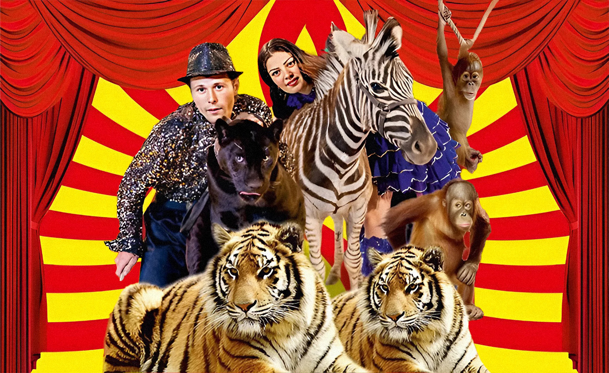 — Воздушная гимнастика в кольце, шотландские зебры, обезьяны, еноты, пони, африканские носухи, индийские дикобразы, большие королевские пудели, верблюды, экзотические танцы с рептилиями и многое другое...
