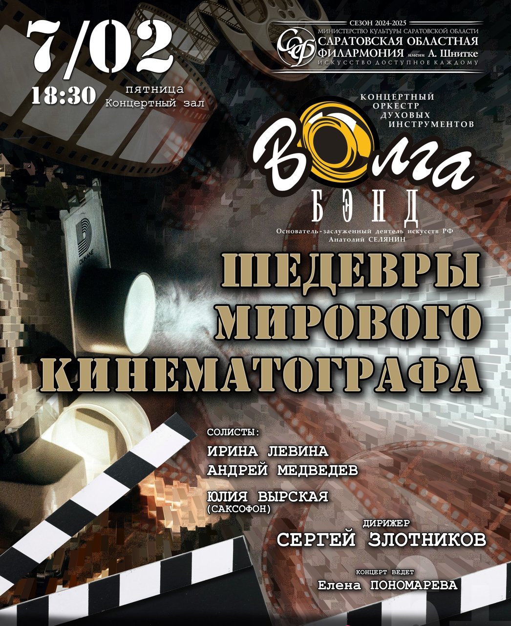 Саратовская областная филармония имени А. Шнитке приглашает на программу Концертного оркестра духовых инструментов «Волга-Бэнд» «Шедевры мирового кинематографа».